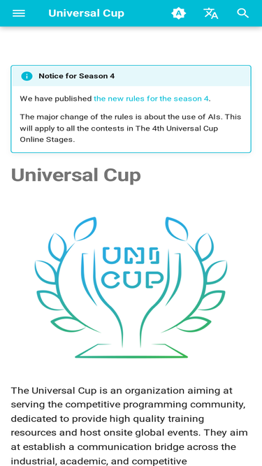 The Universal Cup is an organization aiming at serving the competitive programming community, dedicated to provide high quality training resources and host onsite global events.