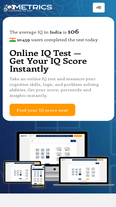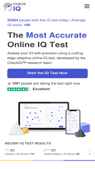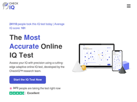 92%CheckIQ is a reliable online IQ test that automatically adapts to your level for more accurate results. Join over 500k users and get your IQ score in 20 minutes.