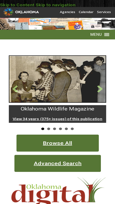 80%Oklahoma Wildlife MagazineView 34 years (375+ issues) of this publication High School and College YearbooksView Yearbooks from across the state 1900s to 1990s Prison Newsletters285 issues written by inmates in Oklahoma State Penitentiary and Oklahoma State Reformatory (1937 to 1973) Oklahoma Health Bulletins363 newsletters from 1943 to 1978 Reign of Terror: The Osage MurdersCourt Documents,