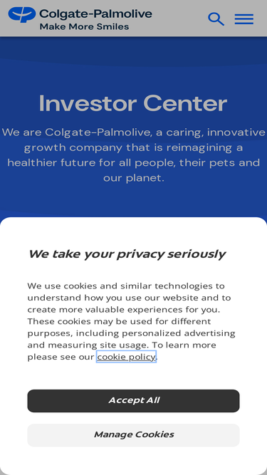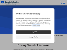 76%The Investor Relations website contains information about Colgate-Palmolive Company's business for stockholders, potential investors, and financial analysts.