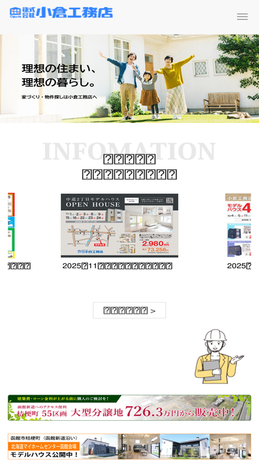 98%函館及び近郊における、住宅や店舗等の建築、中古物件や不動産の売買、賃貸物件の管理・仲介、リフォーム、土木工事など、建築・土木に関連する様々な業務を行っている「株式会社 曲小(かねこ)小倉工務店」で御座います。