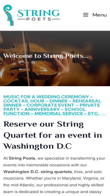 100%washington d.c, string quartet and trio - music for wedding ceremonies, cocktail hours, receptions, parties, corporate functions and art openings.