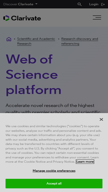 85%Clarivate aims to fuel the world's greatest breakthroughs through enriched data, insights, analytics, workflow solutions and expert services. Find out more.