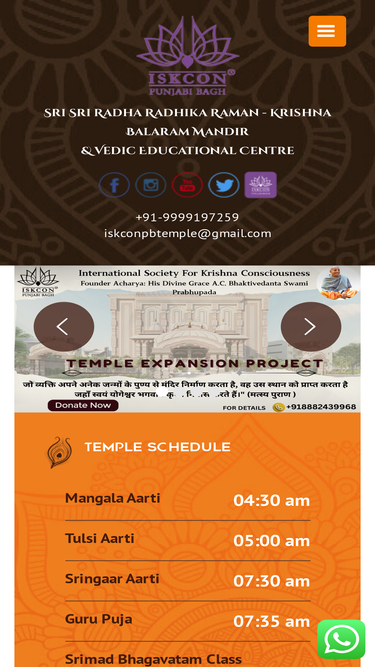 85%ENQUIRY FORM REACH US Address: 41/77 Srila Prabhupada Marg, West Punjabi Bagh, New Delhi-110026. Email: info@iskconpunjabibagh.com iskconpbtemple@gmail.com Phone: +91-9999197259 Social Connect: Mobile App: ANDROID/ISKCON PB | IOS/ISKCON PB Whats App: +91-999 919 7259
