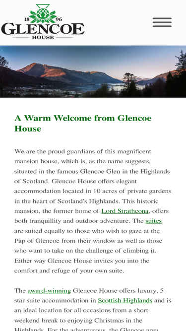 Explore the spacious Glencoe House Hotel suites and enjoy the comfort of our steeped in history luxury accommodation.