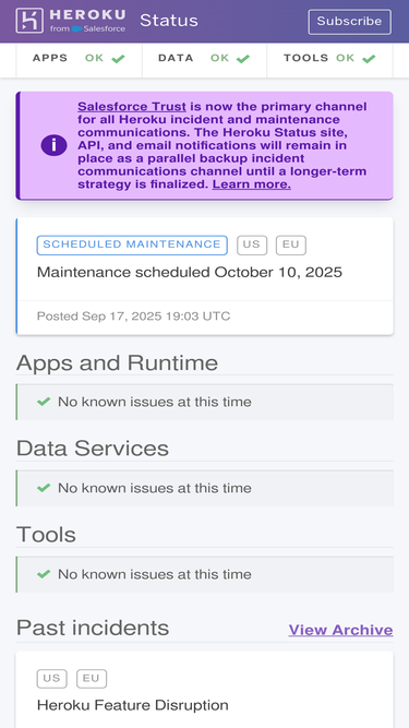 63%heroku status provides the current status and incident history report for the heroku platform.
