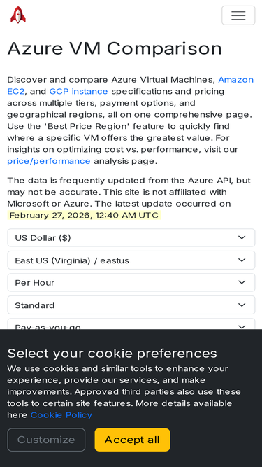 61%Compare AWS, Azure, and GCP pricing instantly. Find the most cost-effective cloud instance for your workload. Free comparison tool with real-time spot, reserved, and on-demand pricing across all regions.