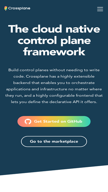 72%Crossplane is a framework for building cloud native control planes without needing to write code. It has a highly extensible backend that enables you to build a control plane that can orchestrate applications and infrastructure no matter where they run, and a highly configurable frontend that puts you in control of the schema of the declarative API it offers.