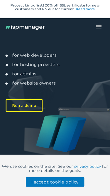 ispmanager is a Linux-based control panel for managing dedicated and game and VPS web servers, as well as selling shared hosting