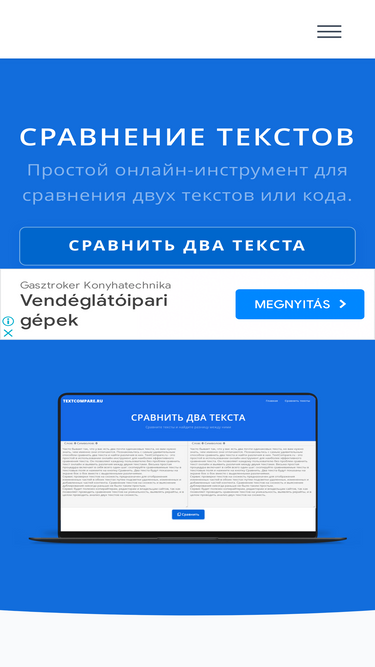 81%сравнение текстов и договоров онлайн. этот сайт поможет вам сравнить два текста и найти различия в них. textcompare.ru - это простой в использовании онлайн-инструмент для наиболее эффективного сравнения текста.
