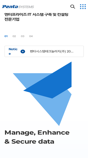 100%펜타시스템은 고객의 비즈니스 성장을 위해 혁신적인 it솔루션을 제공하는 건문 기업입니다, 우리의 솔루션의 고객의 다양한 요구에 맞춰 맞춤형 서비스를 제공하며, 최신 기술과 전문가의 노하우를 활용하여, 효율적인 프로제스 개선, 데이터 분석, 보안 강화 등 다양한 영역에서 비즈니스 성과를 극대화 합니다.
