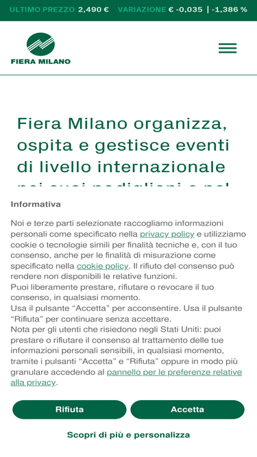 92%dal 1920, fiera milano organizza, ospita e gestisce eventi di livello internazionale, nei suoi padiglioni e nel mondo