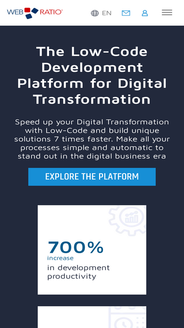 100%WebRatio Platform boosts your productivity and reduce dramatically the time to develop customized Web & Mobile applications.