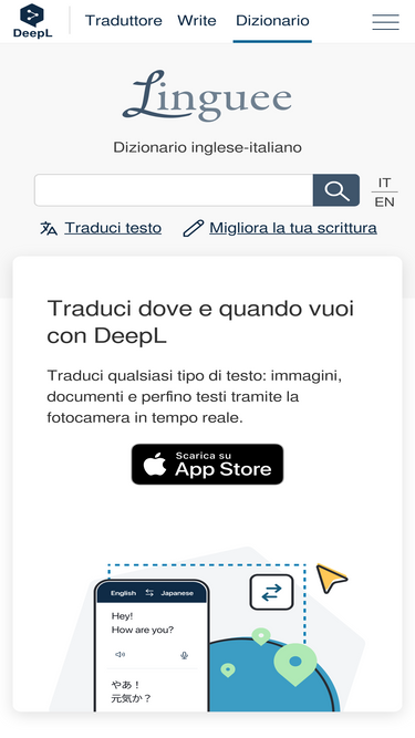 98%Dizionario di italiano e ricerca tra un miliardo di traduzioni redatte da umani. Lingue: inglese, tedesco, francese, spagnolo, portoghese, cinese, giapponese, russo