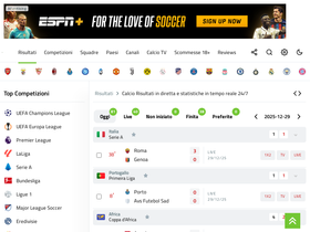 86%Notizie di calcio, Livescore e risultati campionato italiano di calcio di serie A e serie B, Dove Vedere in diretta streaming.