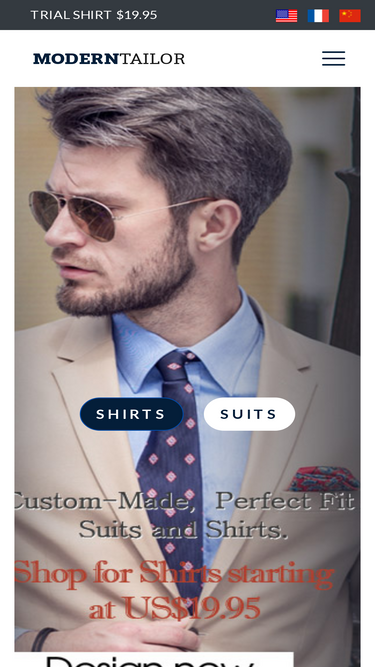 custom shirts from $19.95, suits from $249.95. choose from hundreds of high quality fabrics. design your own tailored business shirts and suits. worldwide delivery.
