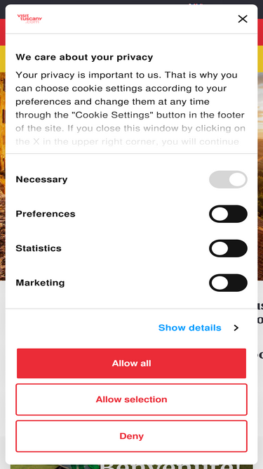 100%Esta página contiene la Política de Privacidad y las Notas Legales de visittuscany.com, el sitio web oficial del destino Toscana. | Visit Tuscany