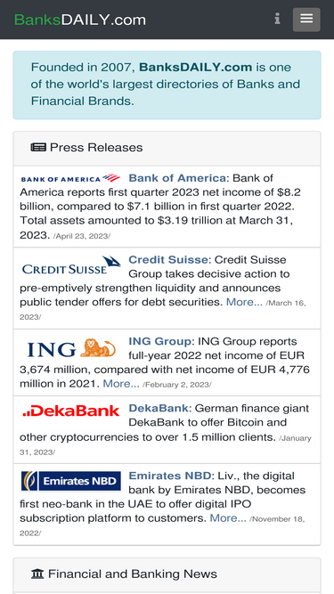 global bank directory. press releases, banking news, bank ratings for consumers of banking services.