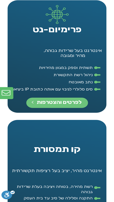 35%פתרונות אינטרנט תקשורת טכנולוגיה אבטחת מידע מתקדמים לעסק שלך תקשורת ואבטחת רשת מתקדמת לארגונים ועסקים.איכות הרשת הטובה בישראל וגיבוי מלא בספקי תשתית בחו״ל. לפרטים נוספים > פרימיום-נט אינטרנט בעל שרידות גבוהה,מהיר ומגובה תשתית וספק במגוון מהירויות ניהול רשת התקשורת נתב מאובטח סים סלולרי לגיבוי עם אותה כתובת IP ביציאה למידע נוסף קו תמסורת אינטרנט מהיר, יציב […]