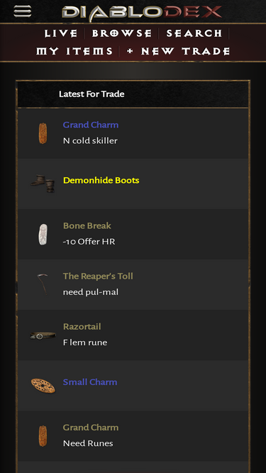 trading platform for diablo 2 resurrected. buy, sell and price check d2r items.