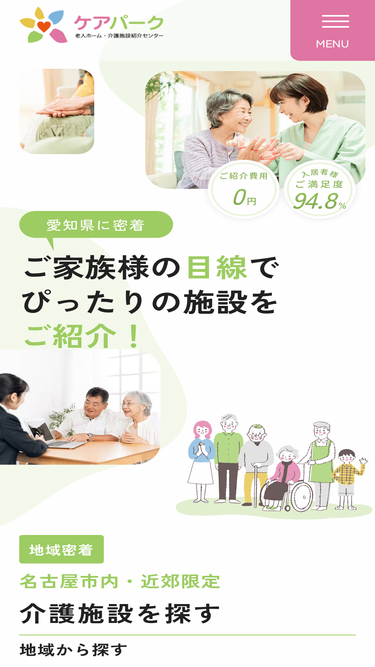 98%【安心の実績!入居率90%】ケアパークは老人ホーム、介護施設を完全無料でご紹介しております。地域密着で名古屋と近郊地域(一宮、稲沢、あま市、蟹江町、小牧市、春日井市、北名古屋市、長久手市)。こちらのサイトでは、あなたの希望条件で施設を検索していただけます。