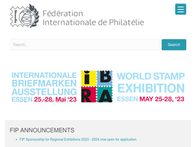 100%Official site of the Fédération Internationale de Philatélie (FIP), the global federation for promoting stamp collecting and philately, featuring news, exhibitions, regulations, commissions, and member federations.