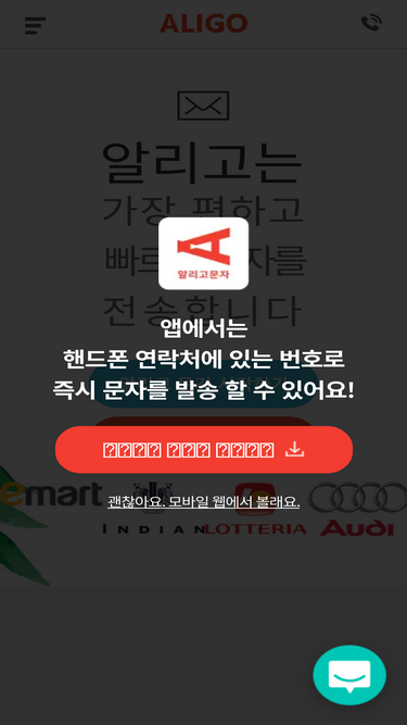 알리고 - 단문 8.4 장문25 그림60원 국내 최저가 문자발송