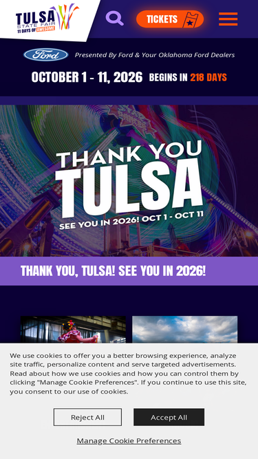 86%the tulsa state fair is the city’s largest family event, providing educational experiences and entertainment during an 11-day span. annually held on the fourth thursday after labor day, this historical event is based upon heritage, family values and quality entertainment for all ages.