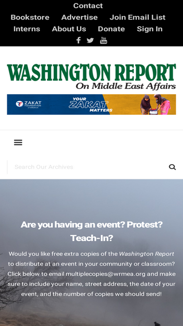 80%For more than 40 years, the Washington Report has published insightful analysis of the political, economic and historical realities of the U.S.-Middle East relationship. Our magazine is packed with special reports on the Israeli- Palestinian peace process, current Middle East issues, and grassroots activism in the U.S. and abroad.
