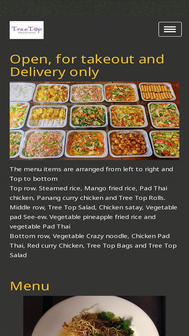 85%For online order please go to our online order page. https://tree-top-thai-cuisine.hipierce.com/ This page is for contact us. If you are order though “CONTACT US” here not from our Online Order page, kindly please “CALL” us to confirm your order.