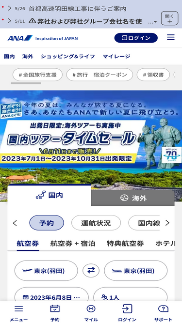 78%【ana公式サイト】国内線・国際線の航空券予約や最新の空席・運賃の照会などはanaで。おトクな運賃でのフライト情報のほか、情報飛行機+宿泊をセットにしたダイナミックパッケージや現地滞在をさらに楽しめる遊び・体験ツアーなどの予約もできます。