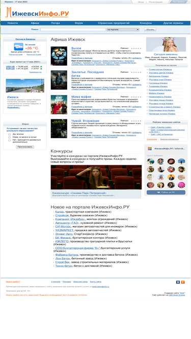87%сайт ижевска. вся информация об ижевске, новости ижевска, подробный прогноз погоды в ижевске, афиша, справочник предприятий, форум и многое другое на ижевскинфо.ру