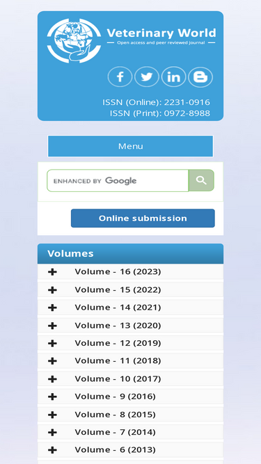 78%veterinary world publishes high quality and novelty papers focusing on veterinary and animal science. studies on zoonotic and emerging infections are highly appreciated. review articles are highly appreciated.