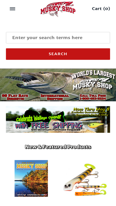 100%Musky Shop is a retailer of Musky Fishing Tackle and Equipment. Rods, Reels, Baits, Tackle Boxes, Hooks, Clothing and Other Equipment can all be found at the World's Largest Musky Shop.