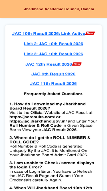 82%JAC Result 2026: The Jharkhand Academic Council (JAC) is expected to announce the JAC Result 2026 for Classes 8, 9, 10, 11, and 12 in April or May 2026. This