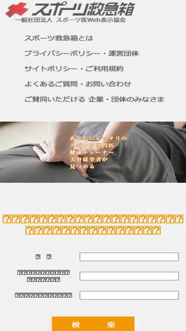 94%「スポーツ救急箱」は、全国の信頼できるスポーツ専門医(*)、健康トレーナー、美容従事者を検索できるサイトです。