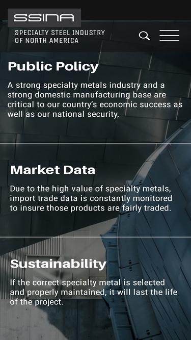 59%SSINA urges Congress and the Administration to enact a comprehensive, long-term infrastructure plan for necessary improvements and new investments to modernize our nation’s transportation and infrastructure systems. SSINA supports efforts to ensure the long-term solvency of the Highway Trust Fund, as well as adequate funding for a broad range of critical infrastructure projects. SSINA also encourages policymakers to embrace life-cycling costing in materials selection.