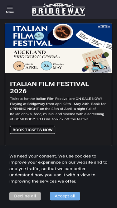 76%northcote point's 4-screen arthouse cinema. in 2013, the bridgeway was named best new zealand cinema by the australian independent distributors association and best independent cinema at the nzmpic awards.