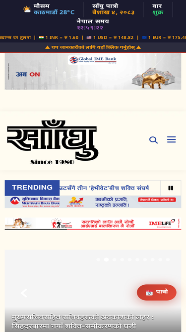 Nepal's digital newspaper, online destination for Nepal news, views, reviews, features, blogs and audio video content covering Nepali politics, society, market, arts, entertainment, ghumphir, global, sports. etc.