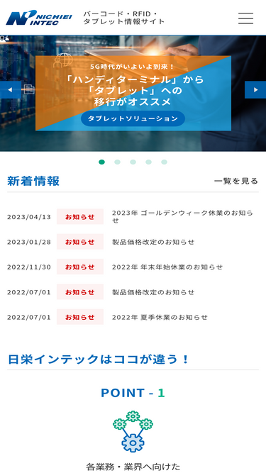92%日栄インテック モビリティ事業部 ictグループの公式サイト。auto-id製品を通じて、受発注や入出庫、在庫管理、保守点検等における人的ミス防止や作業時間の短縮、合理化を可能にし、トレーサビリティーなど確実性と信頼性向上に貢献してまいります。