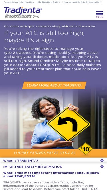 tradjenta® (linagliptin tablets) is a once-daily type 2 diabetes rx medication that can help lower a1c along with diet and exercise. view for isi, med guide and pi.