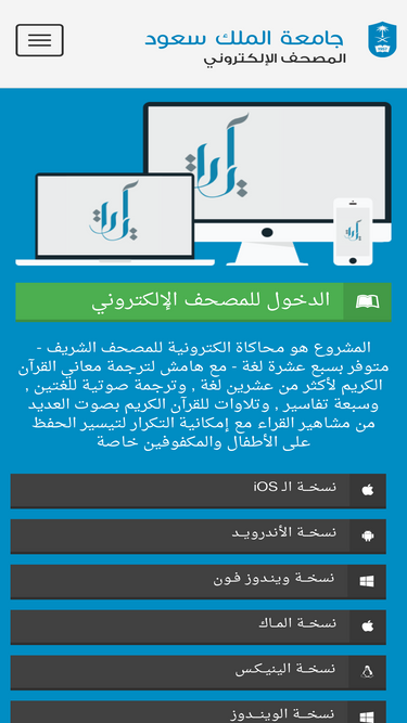 51%المشروع هو محاكاة الكترونية للمصحف الشريف - متوفر بسبع عشرة لغة - مع هامش لترجمة معاني القرآن الكريم لأكثر من عشرين لغة , وترجمة صوتية للغتين , وسبعة تفاسير , وتلاوات للقرآن الكريم بصوت العديد من مشاهير القراء مع إمكانية التكرار لتيسير الحفظ على الأطفال والمكفوفين خاصة