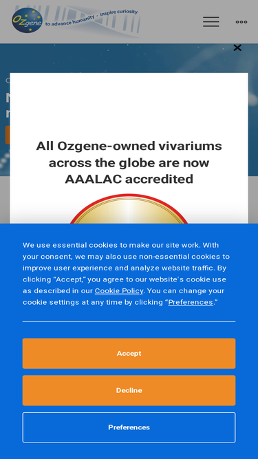 96%Ozgene offers a full spectrum of pre-clinical capabilities from goGermline™ powered mouse models through to breeding and phenotyping.