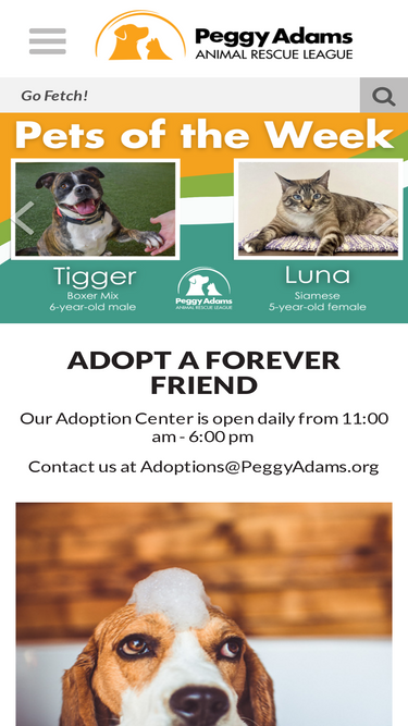 92%Desde 1925, la Liga de Rescate de Animales Peggy Adams ha trabajado para ayudar a proporcionar refugio y colocar a animales adoptables en hogares cariñosos.