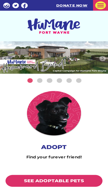 80%At Humane Fort Wayne, we work tirelessly for the benefit of pets and the people who love them. Everything we do—from adoption and retention programs to wellness services, community outreach and education—helps to promote their happiness and well-being. We're for people. We're for pets. We're for Love, Unleashed.