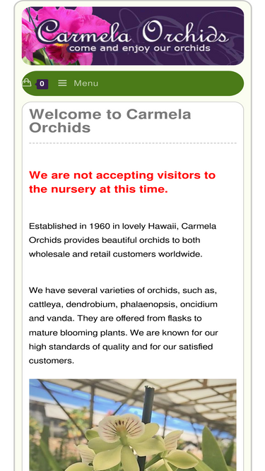 100%Established in 1960 in lovely Hawaii, Carmela Orchids provides beautiful orchids to both wholesale and retail customers worldwide.