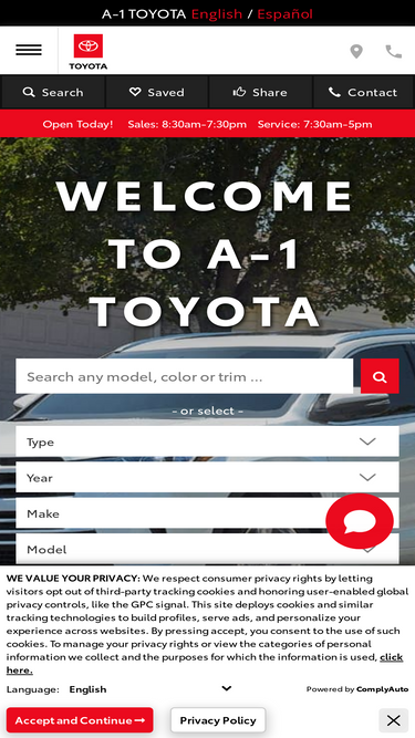 98%we at a-1 toyota are looking forward to serving your toyota automotive needs! between our excellent selection, great financing options, and friendly staff, we are prepared to serve you!
