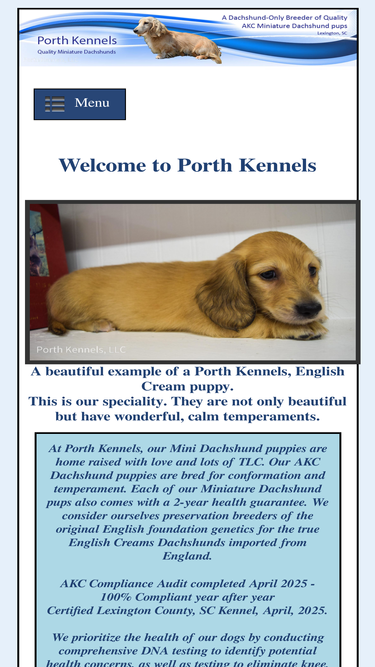 59%porth kennels is a breeder of akc miniature dachshunds, site contains miniature dachshund puppies pictures. information about miniature dachshunds, breeding dachshund puppies for conformation and temperament.