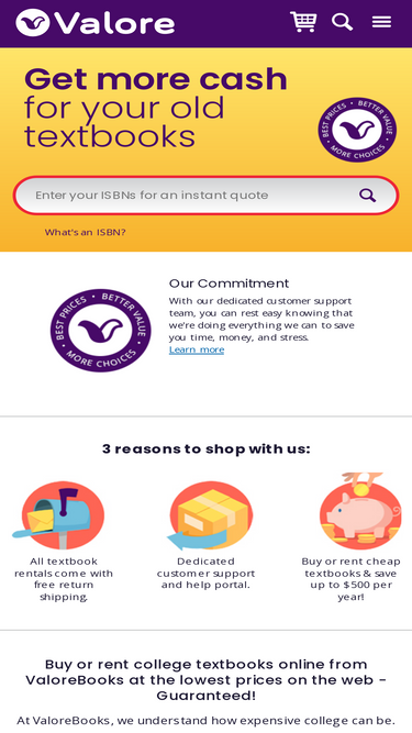 90%with rising education expenses, finding cheap used textbooks is not easy. valorebooks provides students with the option to rent or buy textbooks for the absolute lowest price! click here to learn more about our services today!