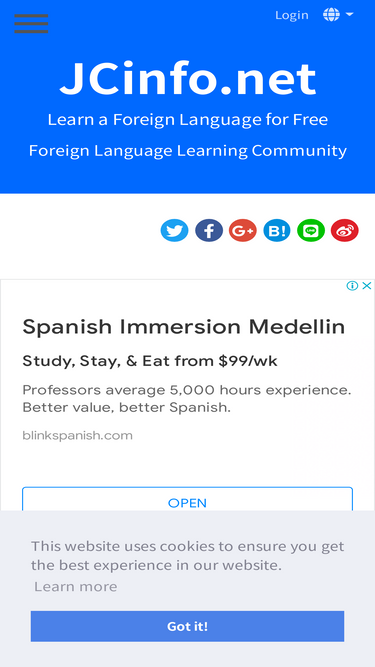 58%jcinfo is a site for learning foreign languages. this website provides opportunities for communication with native speakers.